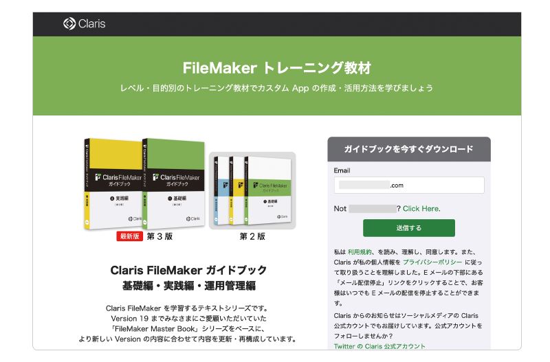 「Claris FileMaker ガイドブック」ダウンロードページ