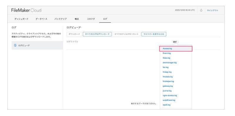 FileMaker Cloud の管理者の方は、誰がいつどのバージョンでアクセスしているのかを確認したい方もいらっしゃることでしょう。その場合には、FileMaker Cloud Admin Console の Access.log から確認できます。手順は下記のとおりです。