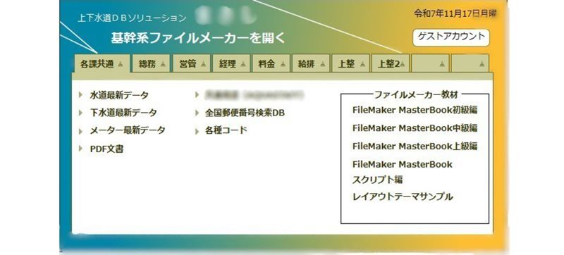 坂東氏は、FileMaker で構築したシステム群を「サブシステム」と位置づけ、基幹システムから書き出したデータを活用する形で運用している。現在、このサブシステムを利用しているのは、上下水道部内の約 40 名の職員だ。