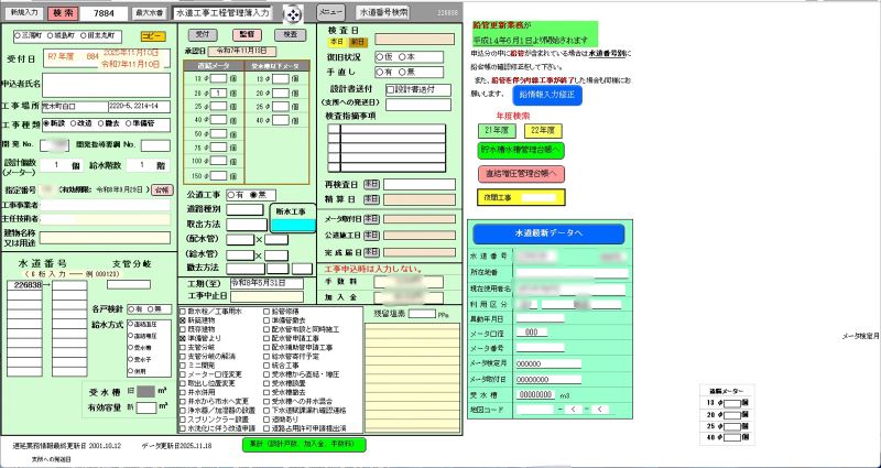 このサブシステムには、実に 120 種類以上もの機能が集約されている。例えば、前述した「水道加入金の管理システム」は、新築工事などで水道を引く際に発生する負担金や履歴を管理するアプリだ。また、「水管橋台帳」では、川を渡る水道管の設置場所や仕様、点検履歴をデジタルで管理している。これらはすべて、職員が自らの手で開発・改修を行ってきたものである。