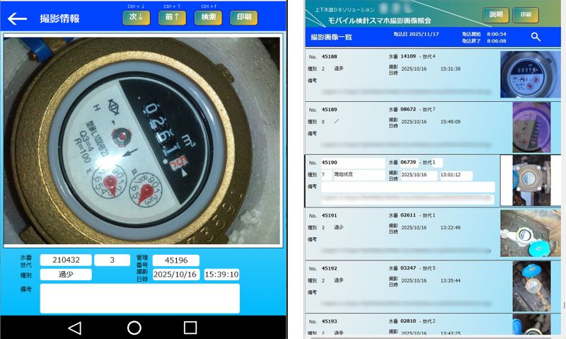 これにより、庁内の職員は自席の PC から即座に現地の写真を確認できるようになった。「本当に漏水しているのか」「誤検針ではないか」といった判断が瞬時に行えるようになり、現地への再訪問という移動時間と労力が大幅に削減されたのだ。