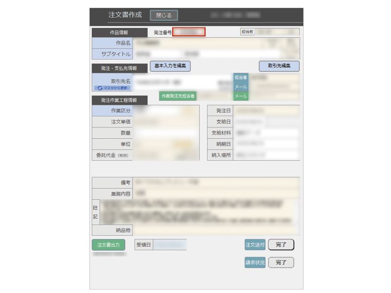 「発注書の作成後、動画原画の作業内容が制作途中で変更になることがあり、枚数秒数の増減や絵コンテの書き直しなどに応じて内容の更新が必要になります。こうした対応は稀ですが、柔軟な対応が求められます」(長南氏)