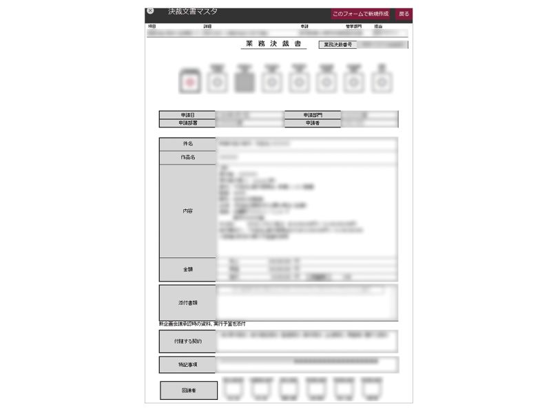 支払管理システムの開発と並行して、シンエイ動画では社内向けの決裁業務システムも新たに構築した。外部スタッフや社員の情報を整備する過程で、社内の稟議・決裁業務にも同じ基盤を活用できると判断したためだ。